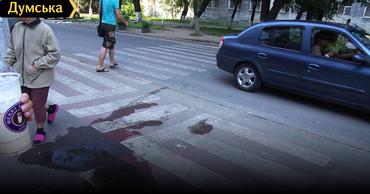 Из жизни дятлов Чудеса разметки: вместо пешеходного перехода — пешеходный лабиринт (уточнено, фотофакт)Неизвестные художники проявили чудеса фантазии, нанося дорожную разметку на улице Маршала Говорова. «Зебру», обозначающую пешеходный переход от одного из местных супермаркетов к парку Победы, можно смело включать в перечень туристических достопримечательностей нашего города. Впрочем, вопреки здравому смыслу и ПДД, работает сие чудо дорожно-транспортной мысли вполне сносно: тех, кто стремится выбраться из лабиринта на тротуар, водители пропускают, несмотря на отсутствие необходимых знаков. Столь необычный вид «зебры» связан с тем, что мастера разметки сначала провели ее прямо к бетонному столбу. А когда поняли, что натворили, решили изящно его обогнуть. УТОЧНЕНИЕ: В дирекции КП «Специализированное монтажно-эксплуатационное подразделение» (CМЭП) «Думскую» заверили, что к этой разметке предприятие отношения не имеет. «Мы рисуем всегда по ГОСТу. Эта «зебра» явно незаконная, никаких документов на нее нет», — отметил представитель КП. Он предположил, что чудо-«зебру» нарисовали работники супермаркета. СМЕРТЬ РОСІЙСЬКИМ ОКУПАНТАМ! Помітили помилку? Виділяйте слова з помилкою та натискайте control-enter |