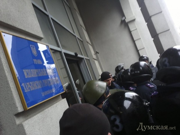 «С тыльной стороны здания буквально за минуту продавили кордон, разбили дверь, зашли, открыли ворота, уже внутр», — отметил репортер.