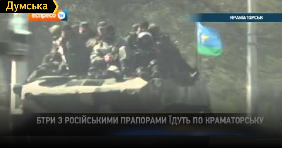 На машинах БТР з російськими прапорами в Краматорську і Слов'янську Донецької області пересувалися замасковані українські військові, щоб таким чином намагалися проникнути в частині, контрольовані збройними сепаратистами.