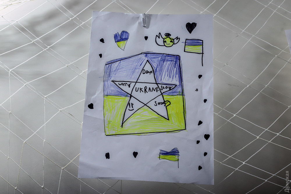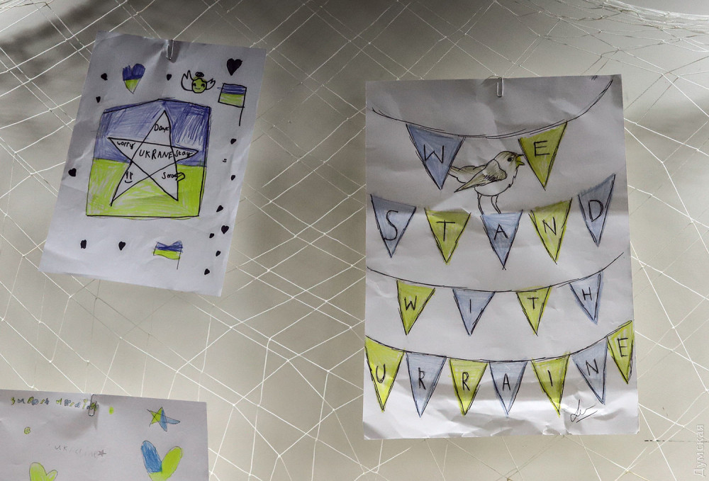 «Для меня очень важно было переключиться с предыдущего проекта «Испытание», — признается хозяйка «Диалогов» Елена Великая. – Он был кричащим, он был болезненным, наполненным страхом, болью, кровью. И когда Юля обратилась ко мне с предложением показать рисунки, которые со всего мира присылают дети с таким теплом, конечно, я ее поддержала. И мы за четыре дня организовали выставку, думаю, у нас получилось и атмосферно, и душевно. Развешивая эти картинки, мы читали каждую надпись, и становилось спокойнее, ведь весь мир понимает, насколько сегодня населению Украины тяжело».
