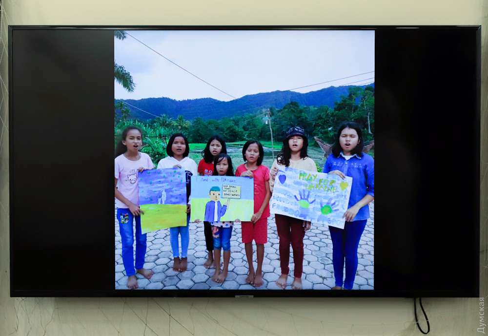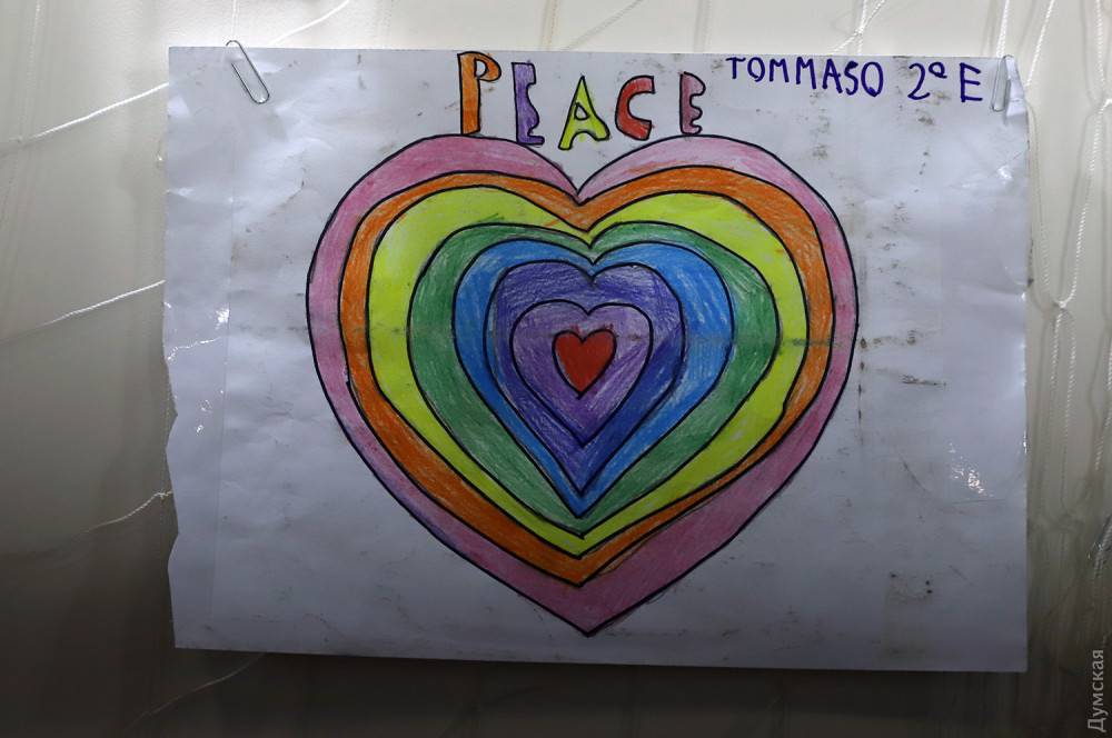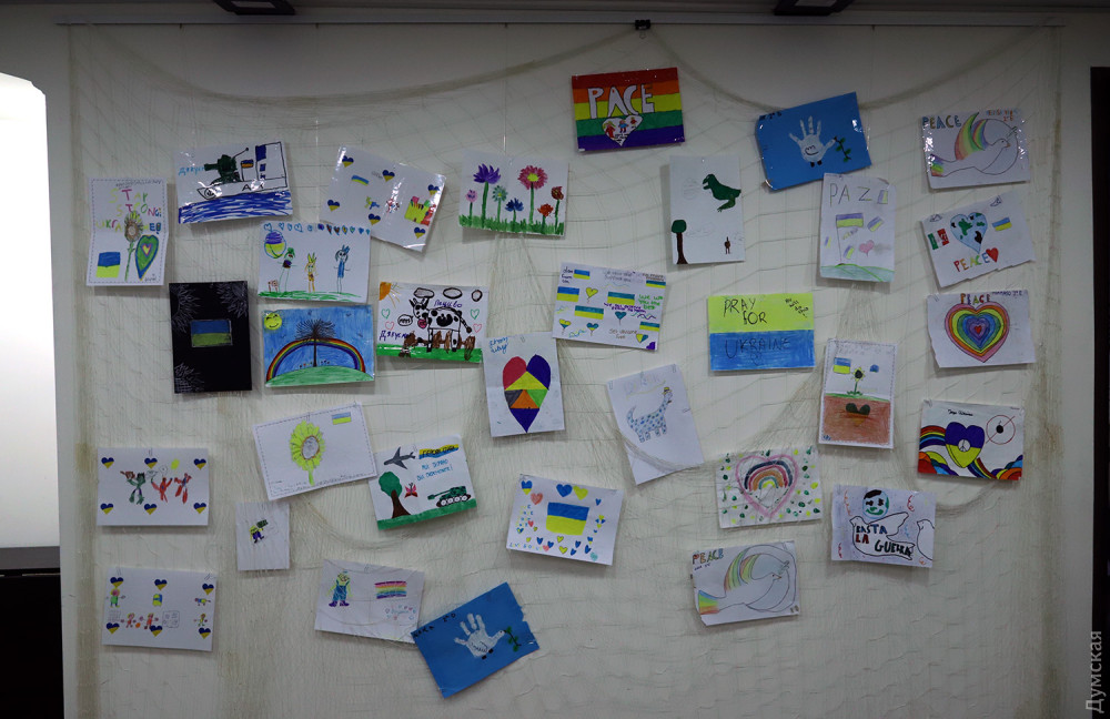 Творческое пространство «Диалоги» (Соборная площадь, 2) открыло необычную выставку детских рисунков «Дети мира – для Украины». Юные авторы из Британии, США, Индонезии, Польши, Грузии, Италии не поскупились на добрые пожелания, знаки сочувствия, нарисовали множество сердечек, желая нашей стране мира и процветания.