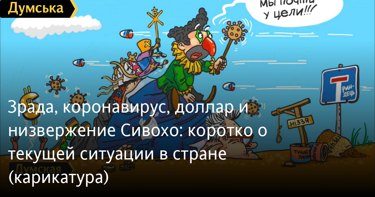 Зрада, коронавирус, доллар и низвержение Сивохо: коротко о текущей ситуации в стране (карикатура)Карикатуристы «Думской» Александр Бронзов и Игорь Жеведь слегка офонаревают от происходящего в нашей стране: тут тебе и зрада-зрадная из Минска, и на фронте обострение, и Сивохо упал, и коронавирус, и доллар скачет, и зимы не было. Они попробовали изобразить все на одной картинке, и вот что получилось. СМЕРТЬ РОСІЙСЬКИМ ОКУПАНТАМ! Помітили помилку? Виділяйте слова з помилкою та натискайте control-enter Новини по цій темі: 23 грудня 2021: Бумеранг: коротко о подозрении Порошенко (карикатура) 24 вересня 2021: Олигархам брошен вызов! (карикатура) 2 червня 2021: "Зеленские деревни" (карикатура) 9 квітня 2021: Бутылочный арт: "Оттакої!" (карикатура) 23 лютого 2021: Одесские пробки: выход есть! (карикатура) 6 листопада 2020: И еще о результатах выборов в Одессе: "Она утонула" (карикатура") |