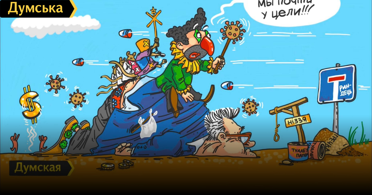 Зрада, коронавирус, доллар и низвержение Сивохо: коротко о текущей ситуации в стране (карикатура)Карикатуристы «Думской» Александр Бронзов и Игорь Жеведь слегка офонаревают от происходящего в нашей стране: тут тебе и зрада-зрадная из Минска, и на фронте обострение, и Сивохо упал, и коронавирус, и доллар скачет, и зимы не было. Они попробовали изобразить все на одной картинке, и вот что получилось. СМЕРТЬ РОСІЙСЬКИМ ОКУПАНТАМ! Помітили помилку? Виділяйте слова з помилкою та натискайте control-enter Новини по цій темі: 23 грудня 2021: Бумеранг: коротко о подозрении Порошенко (карикатура) 24 вересня 2021: Олигархам брошен вызов! (карикатура) 2 червня 2021: "Зеленские деревни" (карикатура) 9 квітня 2021: Бутылочный арт: "Оттакої!" (карикатура) 23 лютого 2021: Одесские пробки: выход есть! (карикатура) 6 листопада 2020: И еще о результатах выборов в Одессе: "Она утонула" (карикатура") |