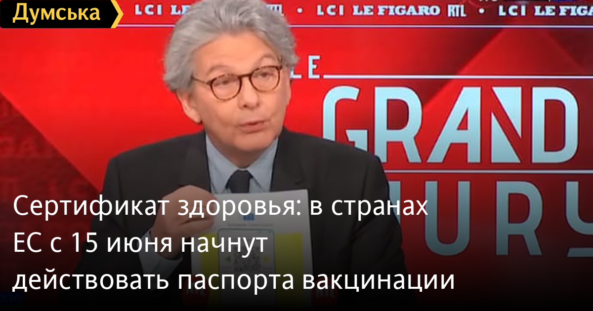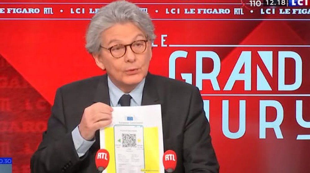 Документ продемонстрировал в эфире французского телеканала LCI еврокомиссар Тьерри Бретон, отвечающий за вакцинацию в ЕС.