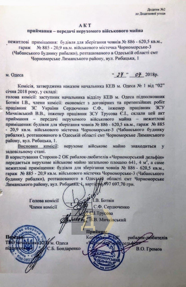 Предоставление такого разрешения находится исключительно в компетенции должностных лиц Министерства обороны Украины. Оперативным командованием «Юг» принято решение об обращении в правоохранительные органы относительно неправомерных действий владельцев незаконно построенных сооружений и освобождения территории от имущества, не принадлежащего к фондам МО. В будущих планах — обустройство территории на берегу Черного моря для бесплатного отдыха военнослужащих оперативного командования «Юг» и членов их семей», — сказал он.