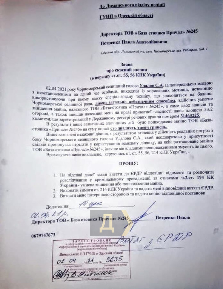 Как оказалось, 22 февраля этого года Лиманская районная администрация своим распоряжением 22/А-2021 обязала все подчиненные ей местные советы обследовать причалы, пристани и места базирования маломерных судов для планирования их пребывания. В состав комиссий, кроме депутатов, входят пограничники и полицейские. До 1 апреля Черноморский поссовет должен был проверить и утвердить статус спасательной станции на будущий курортный сезон, однако любитель русского мира, Сергей Удалов, провел сессию, где под предлогом того, что станция лишает местных жителей доступа к морю, решил избавиться от нее. Вместе со спасательной станцией под нож экскаватора должны пойти около сотни рыбачьих домиков.