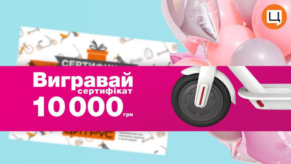 Национальная сеть магазинов гаджетов и аксессуаров «Цитрус» совместно с телеканалом «ДумскаяТВ» объявляют акцию, в рамках которой разыграются сертификаты на 10 тысяч гривен для покупки любого электротранспорта.