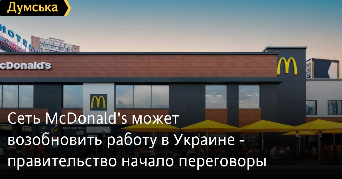 Украинское правительство ведет переговоры со штаб-квартирой международного гиганта фаст-фуда McDonald's о возобновлении работы сети в нашей стране.