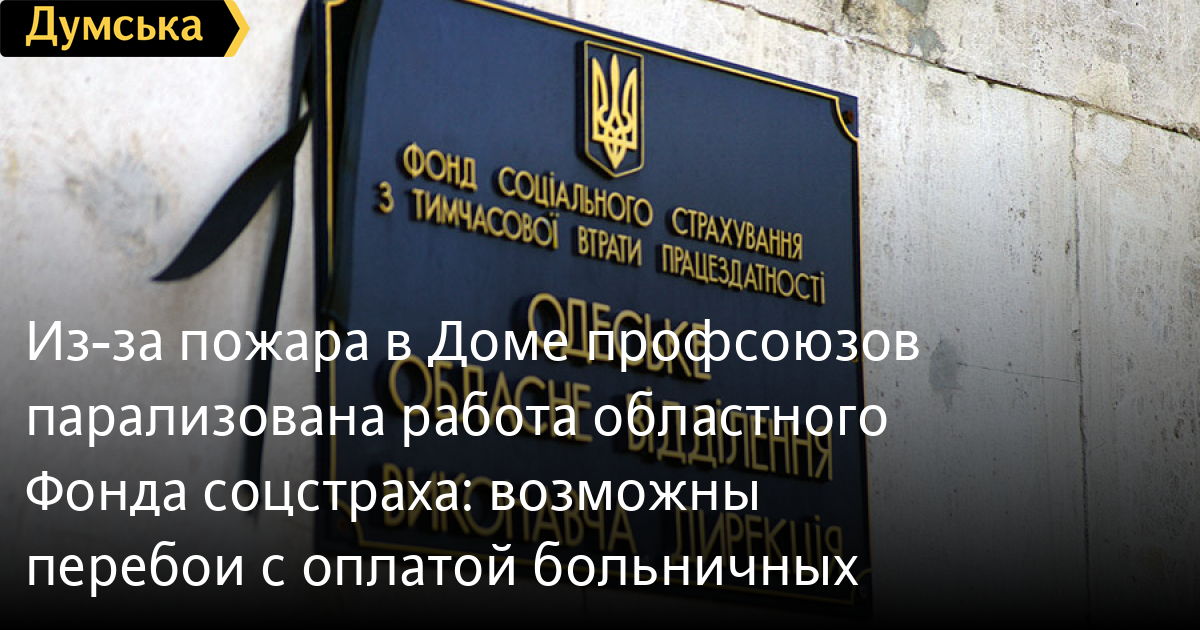 Пожар на Куликовом поле парализовал работу не только Федерации профсоюзов Одесской области, которой принадлежит здание бывшего обкома КПСС, но и областного отделения Фонда социального страхования по временной потере трудоспособности. Последнее тоже размещается в Доме профсоюзов.