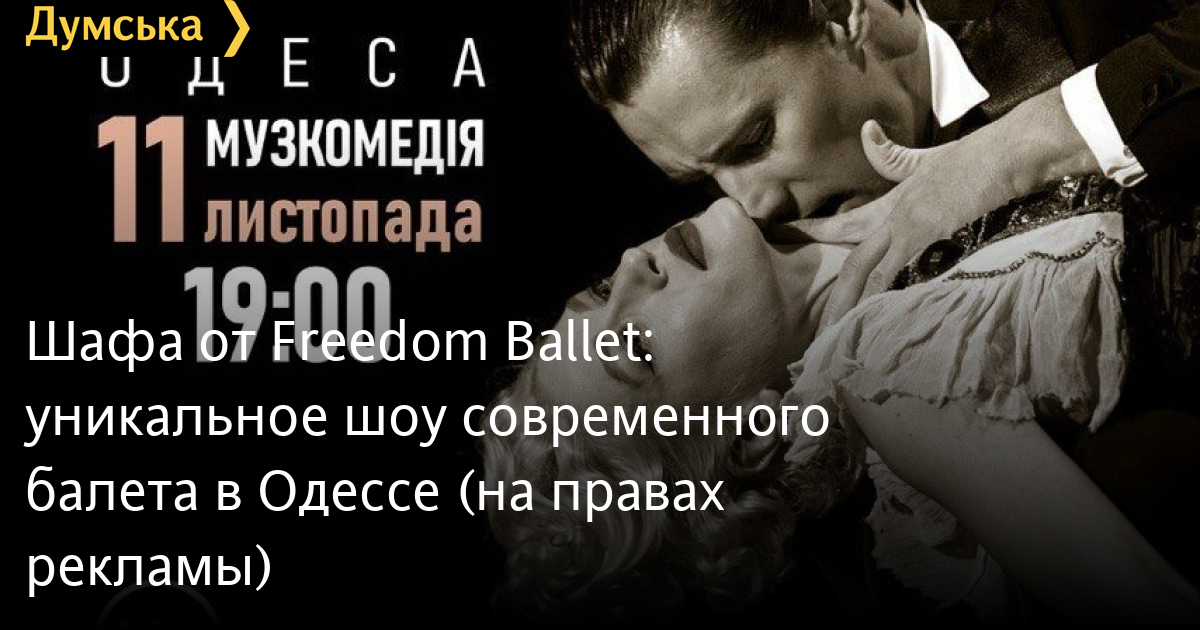 «Шафа» від Freedom Ballet: унікальне шоу сучасного балету в Одесі (на правах реклами)Прекрасним подарунком цього театрального сезону для всіх прихильників сучасного балету стане унікальне шоу «Шафа» від фізичного театру «Freedom», який давно відомий своїми постановками далеко за межами України. 11 листопада о 18:00 на сцені Музкомедії колектив Олени Коляденко покаже свої експерименти з пластикою, світлом і музикою. «Freedom Ballet» — не просто балет. Це формація особистостей, гарних і талановитих людей, які своїми постановками та перфомансами прикрашають наше дозвілля, роблять наше життя в цей час трішечки приємнішим. Всі, хто були на їх виступах, підтвердять — гарний настрій після їх вистав залишається з вами ще дуже довго. Квитки без жодної комісії вже можна придбати безпосередньо у касі театру, або онлайн тут. СМЕРТЬ РОСІЙСЬКИМ ОКУПАНТАМ! Помітили помилку? Виділяйте слова з помилкою та натискайте control-enter |