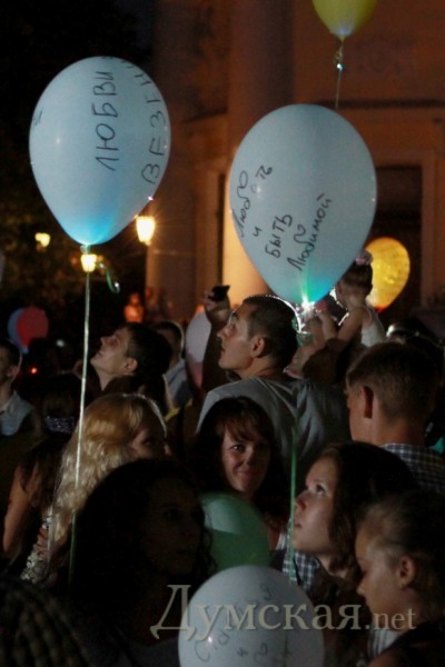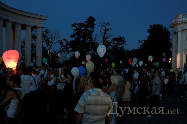 Одесситы запустили в небо над портом около тысячи разноцветных воздушных шаров со светодиодами. Флешмоб организовали и провели участники группы ВКонтакте «Одесса как она есть».