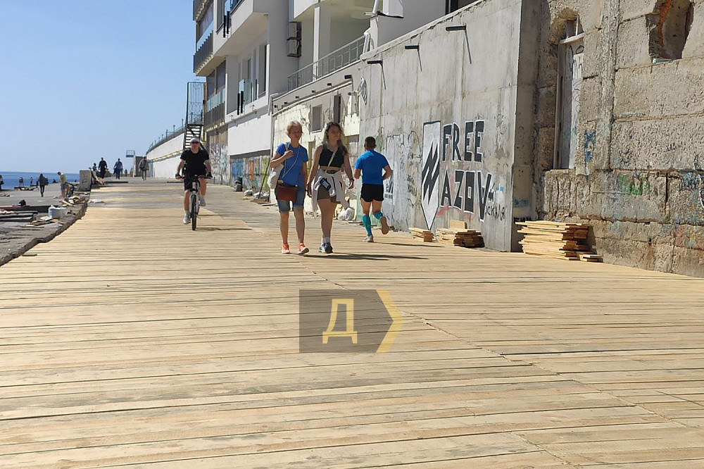 Проте підготовка до пляжного сезону йде повним ходом — в Аркадії відновлюють ротонду, бетонують підходи до моря і майже завершили роботи із заміни дерев'яного настилу на плитах.