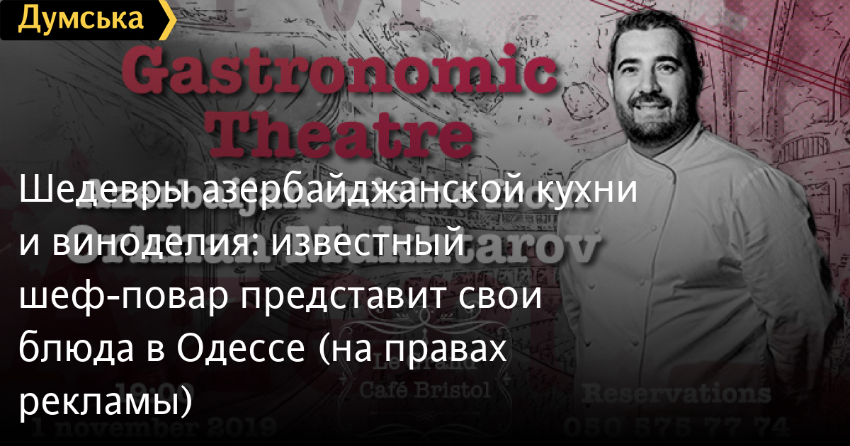 Шедевры азербайджанской кухни и виноделия: известный шеф-повар представит свои блюда в Одессе (на правах рекламы)1 ноября LeGrandCafé Bristol уже в шестой раз проведет гала-ужин со знаменитым шеф-поваром. В этот раз им станет Орхан Мухтаров — известный на весь Азербайджан шеф, основатель и председатель Ассоциации кулинарии Азербайджана, почетный член Ассоциации кулинаров Македонии и Западно-Украинской ассоциации поваров, член Ассоциации Сербии и Черногории. Кроме того, Орхан Мухтаров неоднократно участвовал в международных соревнованиях, где становился обладателем различных кубков и медалей, среди которых особенно стоит выделить One World Cup. Для гала-ужина был разработан сет из пяти блюд с удивительным сочетанием традиций и современности. К каждому блюду винный дом AspiWinerySalavan подобрал пару из своей коллекции вина. Меню вечера: Amuse-bouche Холодная закуска Горячая закуска Основное блюдо Десерт Ужин состоится 1 ноября в 19:00 в LeGrandCafé Bristol. Стоимость — 1290 грн. Резерв столов: 050 575 77 74 СМЕРТЬ РОССИЙСКИМ ОККУПАНТАМ! Заметили ошибку? Выделяйте слова с ошибкой и нажимайте control-enter |