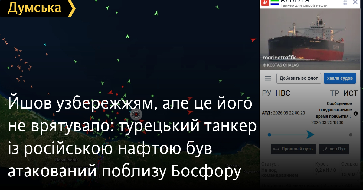 Йшов узбережжям, але це його не врятувало: турецький танкер із російською нафтою був атакований поблизу БосфоруТанкер російського тіньового флоту Altura (IMO: 9292199), що ходить під прапором Сьєрра-Леоне, атакували підводні безпілотники в ніч на 26 березня всього за 15 миль від протоки Босфор. Повідомляється, що судно перевозило близько 140 тисяч тонн російської сирої нафти. За інформацією турецьких ЗМІ, в результаті удару пошкоджено капітанський місток і палубу, у машинне відділення надходить вода. Екіпаж складався з 27 громадян Туреччини, за попередньою інформацією, ніхто не постраждав. Турецька служба морської безпеки направила до танкера спеціалізоване аварійно-рятувальне судно. Згідно з даними трекера руху суден, Altura 22 березня вийшов з Новоросійська і прямував до одного з портів Стамбула. Танкер побудували у 2005 році, його власник — велика турецька компанія. Під час спуску на воду судно ходило під турецьким прапором і носило назву «Бешикташ», потім неодноразово змінювало прапор — Мальта, Маршаллові Острови, Ліберія, Панама. У травні 2024 року — змінило прапор на Сьєрра-Леоне і отримало назву «Кайсері», а на початку 2026 року було перейменовано на Altura. Довжина судна — 274 метри, ширина — 50 метрів, дедвейт — 163 750 тонн. «Ніхто не сумнівається, хто ввів найефективніші санкції проти цього танкера тіньового флоту. Цікаво, що капітан, ймовірно, щось підозрював і вів судно, заповнене майже під зав'язку сирою нафтою, не через міжнародні води Чорного моря, а поблизу турецького узбережжя, остерігаючись атаки. Однак перед самим Босфором танкер вийшов з економічної зони Туреччини і відразу був атакований. Думаю, це не остання успішна операція наших морських безпілотників», — зазначив оглядач «Думської» Олексій Сухой. СМЕРТЬ РОСІЙСЬКИМ ОКУПАНТАМ! Помітили помилку? Виділяйте слова з помилкою та натискайте control-enter |