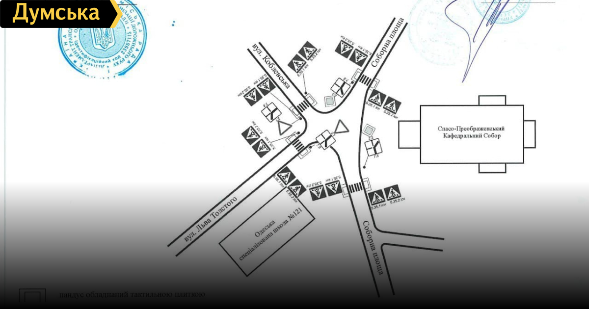 Со вчерашнего дня приоритет дорожного движения по Соборной площади, Коблевская и Толстого — второстепенные.