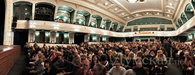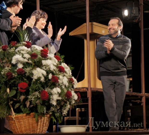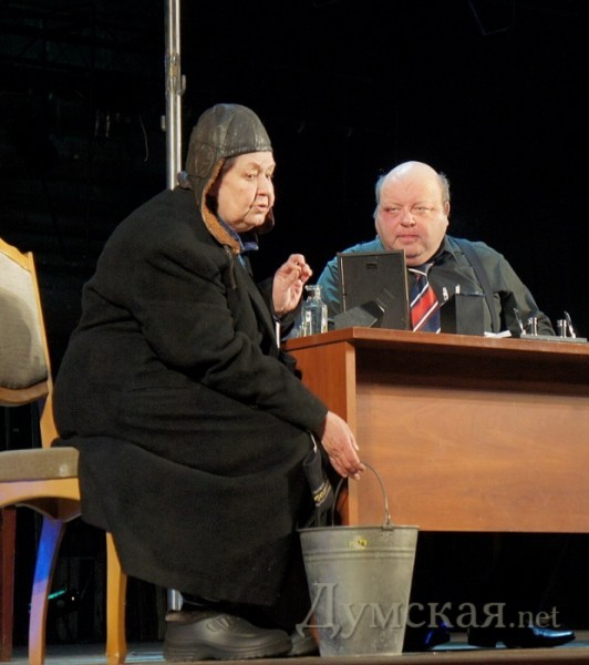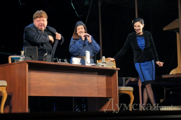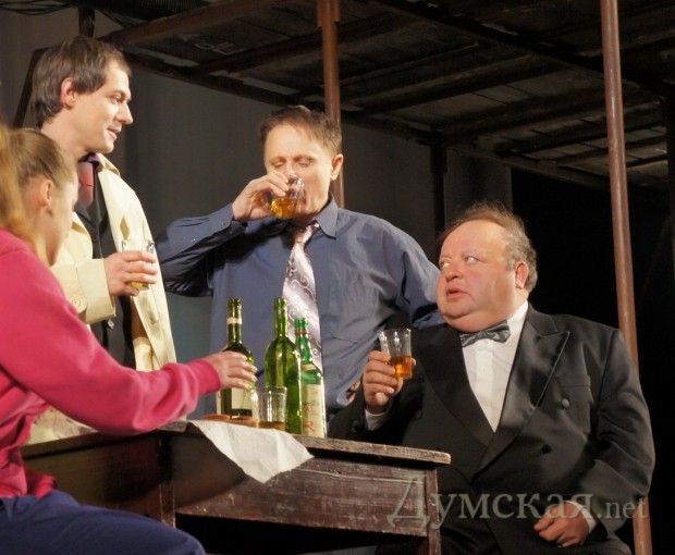 Премьеры в Русском: 2 истории советских запоев, «Бляха-муха» и Шендерович (Фоторепортаж)В последние выходные января одесский зритель, соскучившийся по премьерам в Русском театре, получил сразу два спектакля а одной постановке. Каждая из премьер является одноактовой юмористической зарисовкой – одна из ушедшего 20-го века, вторая – из текущего 21-го века. В театре рассказывают, что «Двадцать минут с ангелом» открывает дверь в ностальгирующий мир быта и человеческих отношений советской эпохи. Начало спектакля, при этом, было очень сумбурным и даже отталкивающим — двое растрепанных мужиков в гостиничном номере пытались прийти в себя после трехдневного запоя, чтобы одолжить у кого-то денег на четвертый день пьянства. Зрителей происходящее определенно забавляло — посетители театра хихикали и смеялись при каждом падении или пьяной выходке героев. К слову, «Двадцать минут с ангелом» — произведение Алесандра Вампилова, одного из самых знаковых русских драматуров ХХ столетия, написана пьеса еще в далеком 1962 году. С этого момента не просто прошли годы — прошли эпохи. Сейчас никто уже не пьет в командировках на последние деньги, позабыв о завтрашнем дне. Героям спектакля наконец-то повезло и вместо нужных им трех рублей на бутылку они получают просто так десять червонцев. Стоит отметить – советские десятки были настоящими потертыми красными червонцами той эпохи, как и пустые пивные бутылки с наклейками «Жигулевское». Казалось бы, проблема решена, но для того времени десять червонцев — слишком большая сумма, чтобы ее дали просто так. Герои решают докопаться до правды, устроив почти партсобрание из жильцов соседних номеров. Истина находится, и за это стоит выпить! После перерыва зрителей ожидала вторая постановка — «Бляха-муха». Это исконно русское выражение, как «Ешкин-кот» и «Екарный бабай», означающее силу и прочность русского духа. За право называться родиной этого выражения выступает город Н в лице своего мэра в исполнении Олега Школьника. Он весь спектакль пьет, пьет и еще раз пьет. У мэра есть две секретарши – одна для ведения всех дел, другая — «крышует» родственника-бандита. Этот спектакль — уже четвёртая совместная работа известного писателя-сатирика Виктора Шендеровича и одесского режиссера Михаила Чумаченко. К слову, на премьеру постановки приехал и сам Шендерович, который под аплодисменты зрителей вышел на сцену после спектакля. Текст и фото: Николай Вдовенко СМЕРТЬ РОСІЙСЬКИМ ОКУПАНТАМ! Помітили помилку? Виділяйте слова з помилкою та натискайте control-enter |