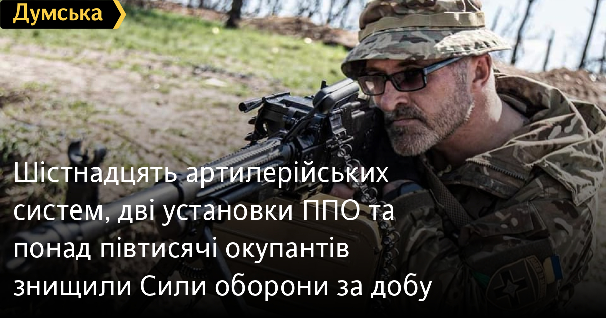 У Генеральному штабі Збройних сил України повідомили, що вчора наші захисники спалили 16 артилерійських систем (2946 за весь час), знищили дві ворожі установки ППО (300) і збили 28 безпілотників оперативно-тактичного рівня (2505).