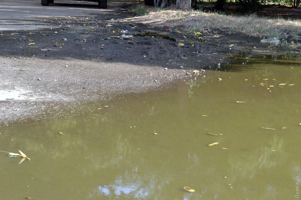 Как передает корреспондент «Думской», зловонная лужа образовалась на улице Шкодова гора возле дома №15.
