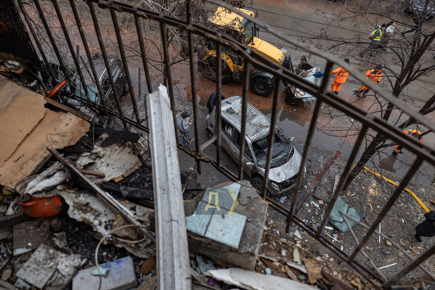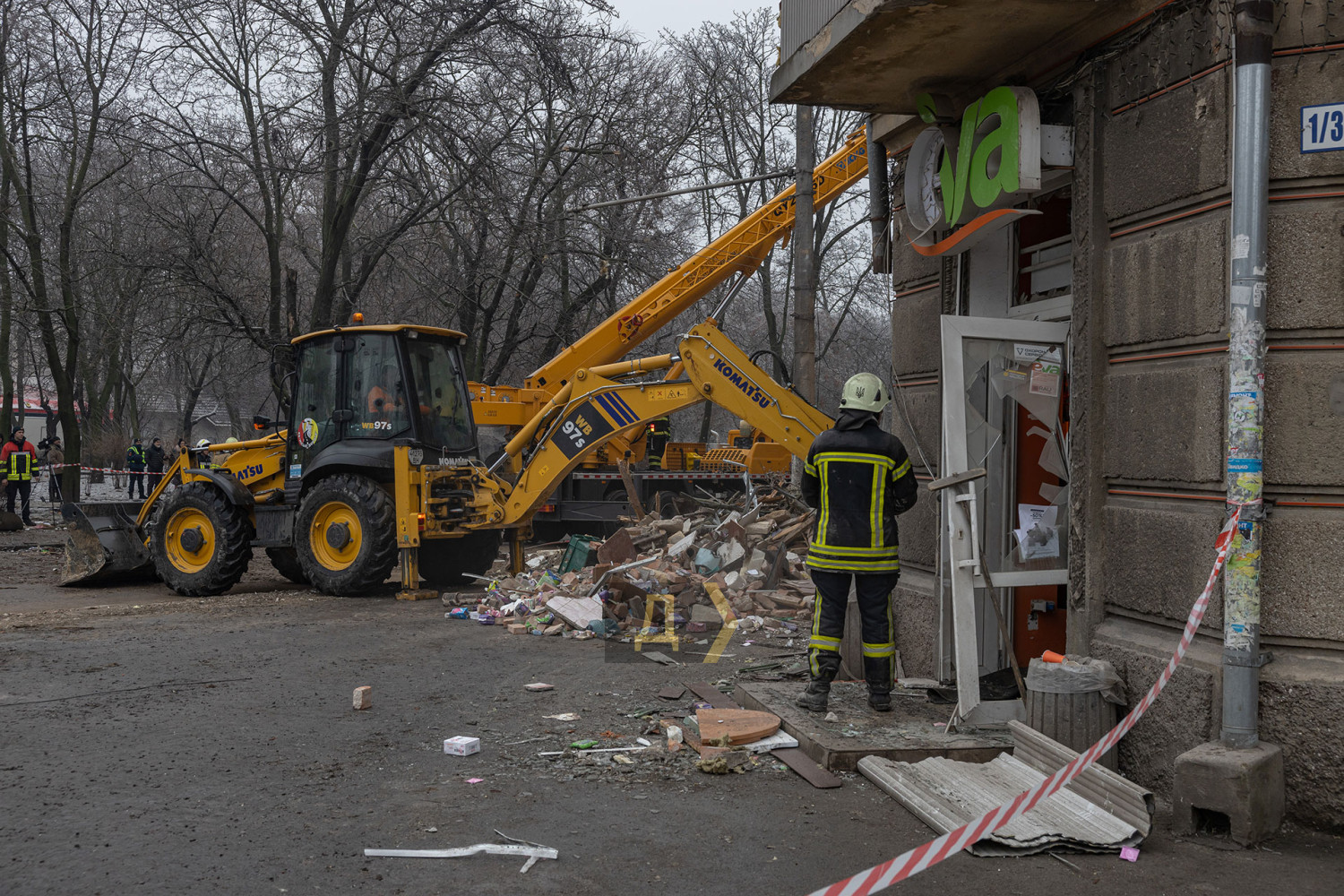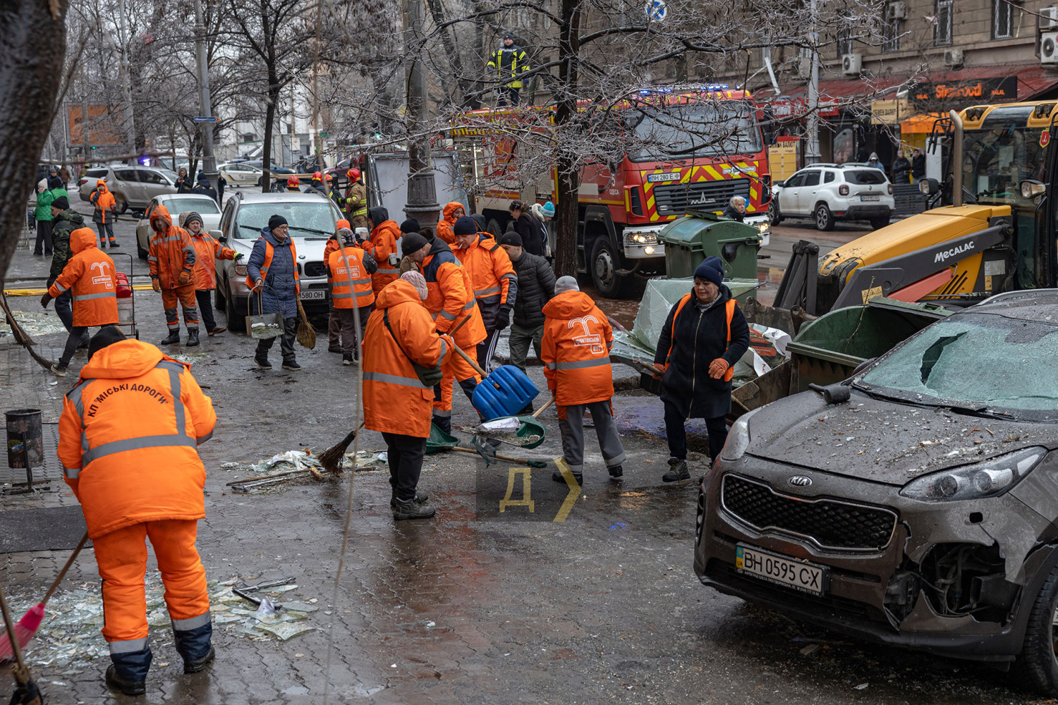 Ликвидация последствий атаки продолжается. Коммунальные службы разбирают завалы, расчищают проезды. Уже вывезено 380 м³ обломков.