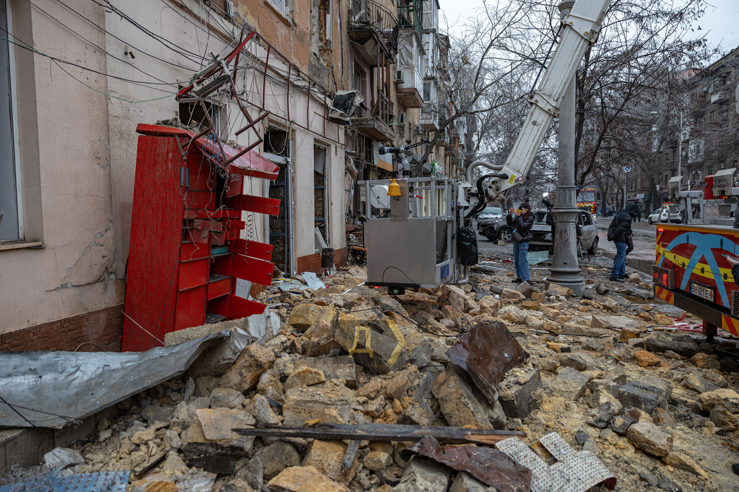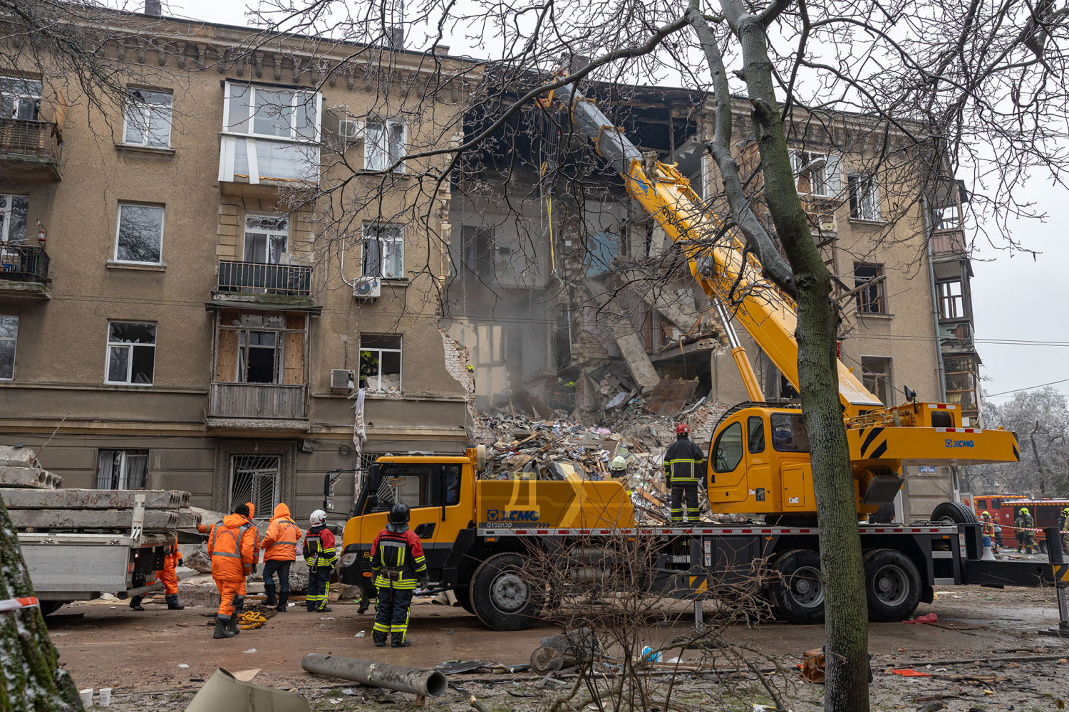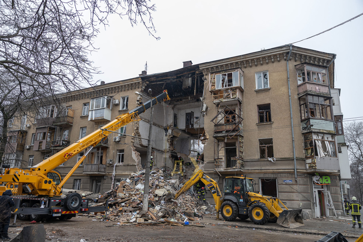 Ликвидация последствий атаки продолжается. Коммунальные службы разбирают завалы, расчищают проезды. Уже вывезено 380 м³ обломков.