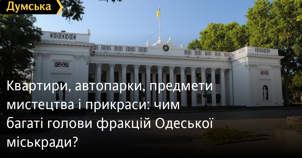 Квартири, автопарки, предмети мистецтва і прикраси: чим багаті голови фракцій Одеської міськради?Головний «довіряєць» Олег Етнарович купив квартиру під Одесою, Олексій Потапський — новий автомобіль, а щедрий «слуга»-меценат Вадим Мороховський більшу частину доходів роздав іншим. «Думська» продовжує вивчати декларації чиновників і депутатів. Цього разу вся увага головам фракції в Одеській міськраді. Зазначимо, що фракції ОПЗЖ формально не існує, її осколки увійшли в депутатську групу «Українська мрія», доходи лідера якої ми вивчали тут. У декларації у голови фракції «Довіряй ділам» Олега Етнаровича вказано двох членів сім'ї — дружину Світлану і доньку Поліну. Житла у голови цього сімейства в Одесі немає. Є 1000 метрів нежитлового приміщення і ще 1370 квадратів у нього на половину з братом (колишнім прокурором і ексчоловіком радниці мера Вероніки Етнарович). Крім того, у нього 11 соток землі в селищі Таїрове, а ще квартира в Лиманці тієї ж Таїровської громади (куплена в жовтні 2024-го за 1,8 млн грн). У дружини є дві квартири в Одесі (100 кв.м. і 300 кв.м.), два машиномісця, офіс площею 73 квадрати, а ще й невеликий садовий будиночок (37 кв.м.) і 6 соток землі в селі Нове Доброславської громади. Дорогі прикраси є тільки у чоловіка. Три пари годинників Ulysse Nardin Marine, Breitling і OMEGA. У Світлани ні ювелірка, ні шуби не задекларовані. Зате є досить великий вантажний автопарк: фургон Renault Master 2014-го, причіп Schmitz SKO24 2007-го, фура Scania 2009-го і причіп Schmitz 2012-го. У лютому 2024-го Світлана придбала ще одну Scania, новішу — 2017 року, за 1,2 млн грн. І для душі — Porshe Macan 2016 року. У самого Олега Етнаровича тільки один автомобіль — JAGUAR F-PACE за 3,2 млн. Новенький спорткар депутат купив 30 грудня 2022 року. Гарний новорічний подарунок у перший рік великої війни. Крім того, подружжя — славні кредитори. Вони позичили від 2 до 40 тисяч доларів Віталію Закуреному, Ігорю Василишину, Андрію Степанюку, Світлані Нікульчі та Оксані Співак. Олег Етнарович задекларував 15 об'єктів інтелектуальної власності — товарних знаків. Усі вони зареєстровані на його ім'я з 2004 по 2015 рік і охоплюють широкий спектр продукції: від автомобільних дзеркал, амортизаторів, дитячих автокрісел та акумуляторів до спортивного інвентарю та медичних матраців. Це й не дивно — його бізнес — торгівля авто. Голова фракції «Слуга народу» Вадим Мороховський відомий, в основному, як банкір і меценат. Разом із дружиною Лією він володіє квартирою (150 м²) і машиномісцем в Одесі, ще однією квартирою (майже 110 м²) в Ізраїлі, 10 сотками в Одесі та майже 10 гектарами в Березівському районі Одеської області й навіть елінгом (149 м²) в Одесі. Крім того, ділить навпіл із якимось Володимиром Торбаном велику ділянку (майже 1,7 га) у селищі Таїрове. Крім того, Лія Мороховська має право проживати у квартирі (51 м²) у Чорногорії (належить іноземцю) та разом із чоловіком — у великому будинку (1126 м²) в Одесі, який Вадим орендує в інших осіб (Семен Кантор та Людмила Мороховська). Перейдемо до цінностей. Голова фракції «Слуга народу» в міськраді — серйозний колекціонер мистецтва. Він же і засновник Музею сучасного мистецтва Одеси, де і виставляються роботи. У його декларації 953 картини, скульптури і предмети мистецтва 19-21 століть. Крім того, є 127 робіт Михайла Жука і ще одна колекція з 43 картин 19-20 століть вартістю понад 4 млн грн, а також окрема картина Нюренберга майже за 880 тис. 
