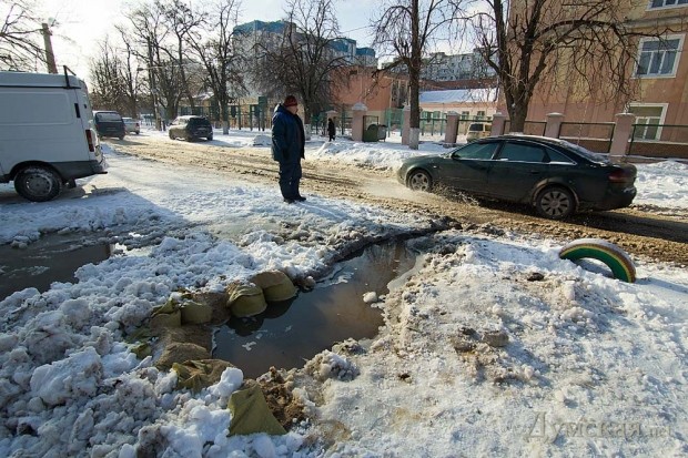 Не дожидаясь ремонтников, одесситы своими силами перегородили место прорыва мешками с песком и направили сток воды на проезжую часть улицы Ефимова. Они опасаются, что лишенные фундамента одноэтажные дома натянут сырость из образовавшегося озера.