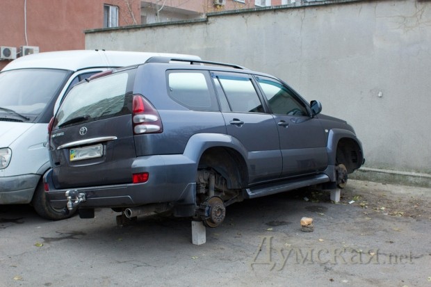 В Одессе неизвестные злоумышленники похитили все четыре колеса с автомобиля Toyota Land Cruiser, оставив машину стоять на кирпичах.
