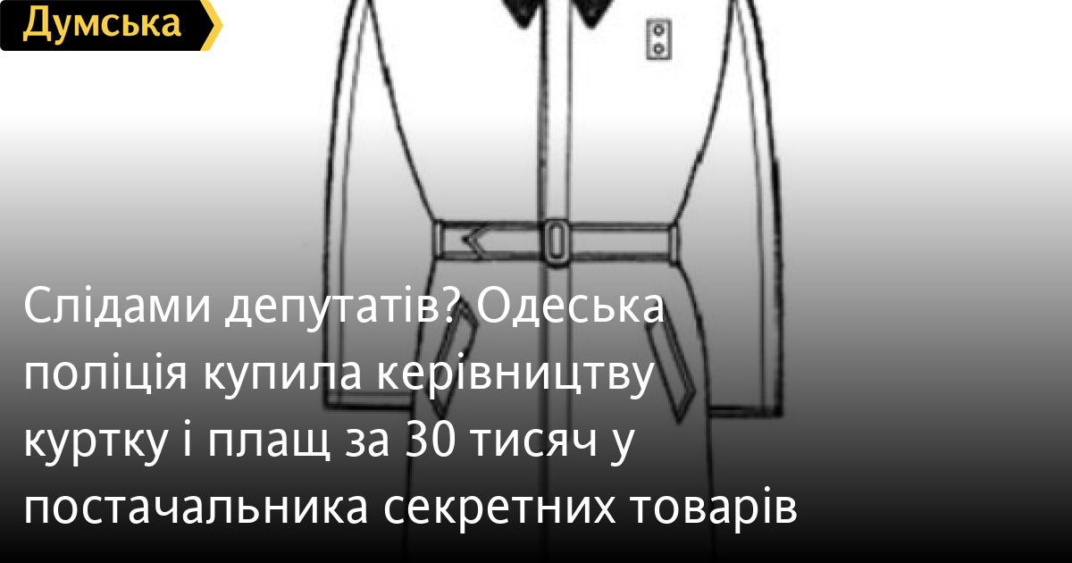 Слідами депутатів? Одеська поліція купила керівництву куртку і плащ за 30 тисяч у постачальника секретних товарівВерхній одяг для вищого керівництва замовила одеська поліція. Тендер на 30 тисяч гривень віддали Зінаїді Масловській — підприємиці з Одеси, яка займається пошиттям одягу, передає кореспондент «Думської». Плащ обійдеться в 18 тис. 100 гривень, а куртка коштує майже 12 тисяч. Відзначимо, 2025 року та раніше Масловська регулярно одягала одеських поліцейських. У підприємиці замовляли куртки, костюми, сорочки, штани, фуфайки, футболки, шапки, кепки та парадний пояс. Примітно, що з 2017 року Зінаїда постачала державі дещо секретне, що сховали із загального доступу ProZorro з позначкою «щоб русня не підглядала». Нагадаємо, нещодавно журналісти «Думської» звернули увагу на вбрання депутатів міськради, в яких вони з'явилися на останній сесії року. Суми на деякий одяг та аксесуари виявилися порівнянними з ціною квартир та автомобілів. Детальніше тут. СМЕРТЬ РОСІЙСЬКИМ ОКУПАНТАМ! Помітили помилку? Виділяйте слова з помилкою та натискайте control-enter |