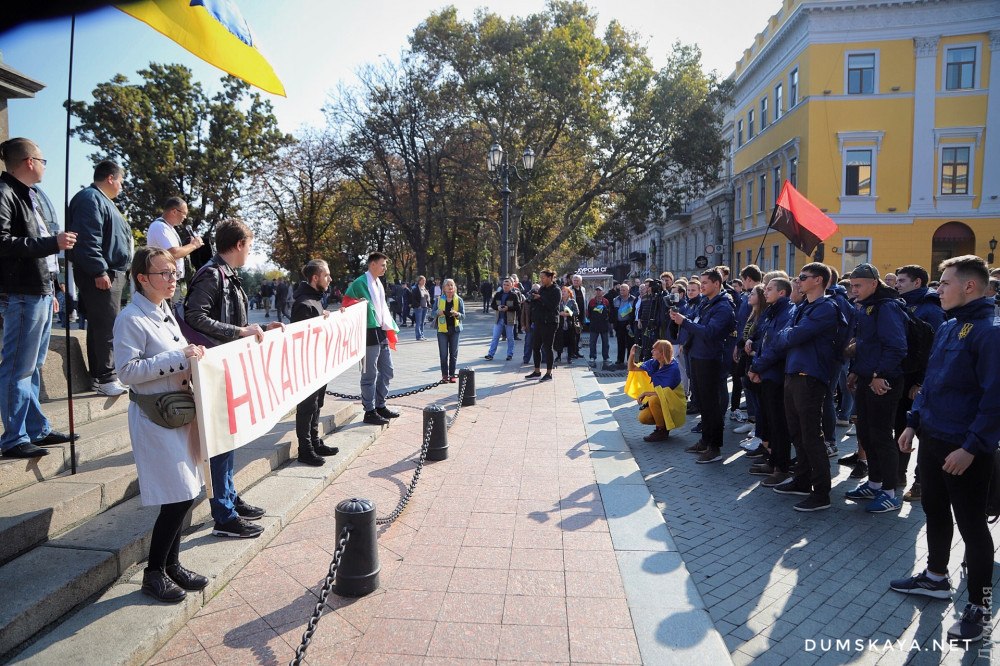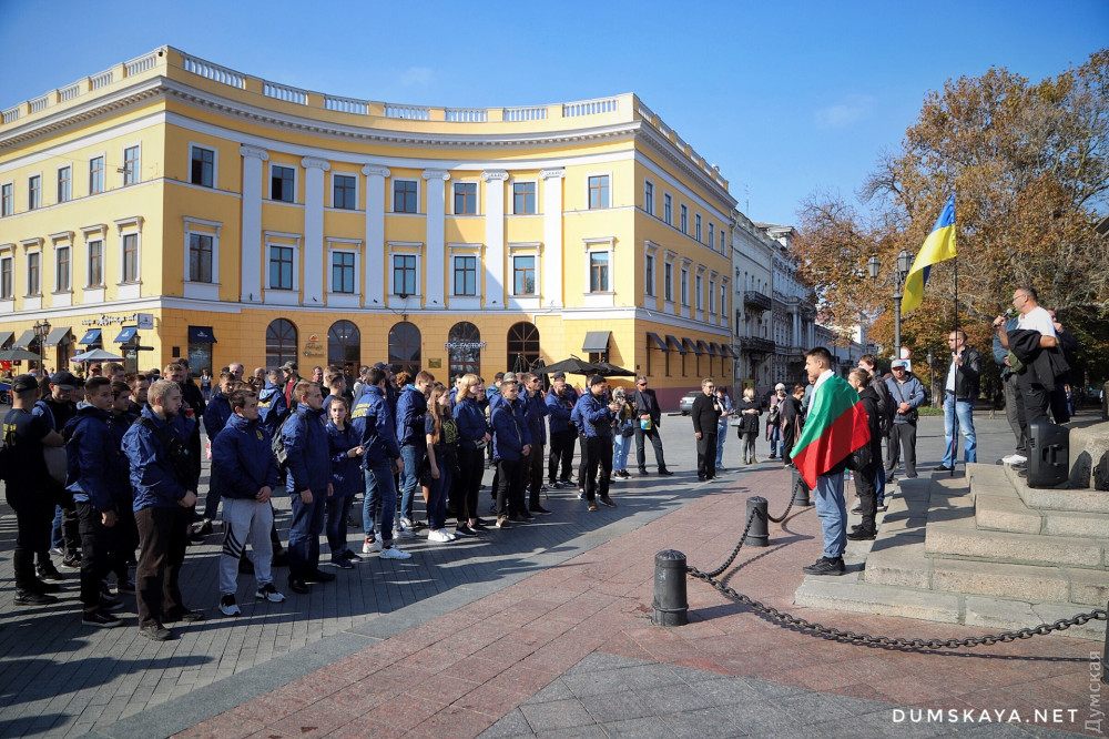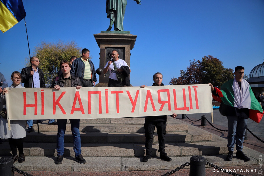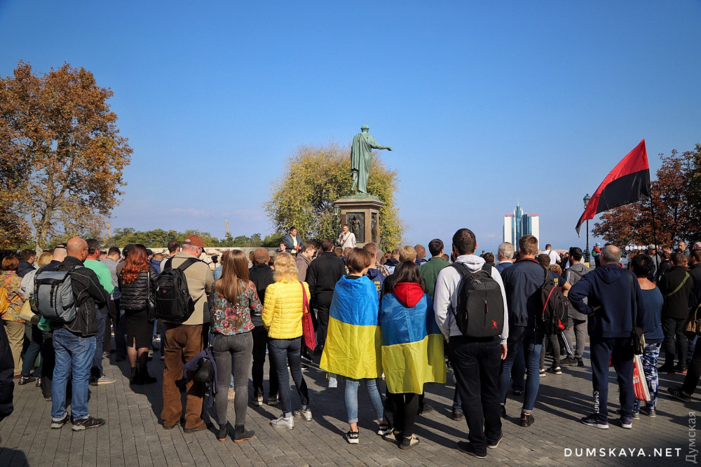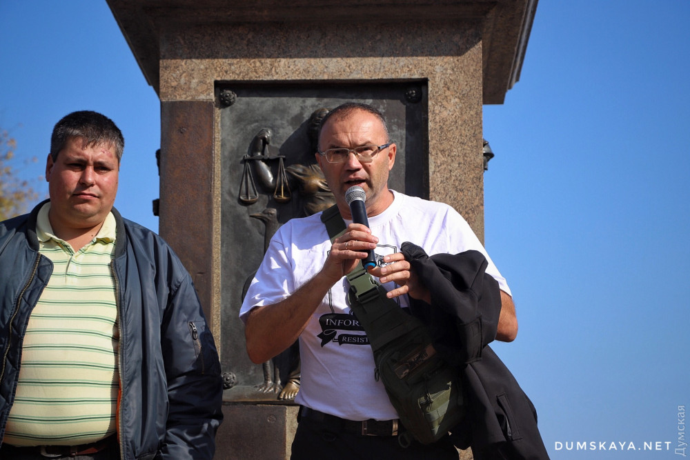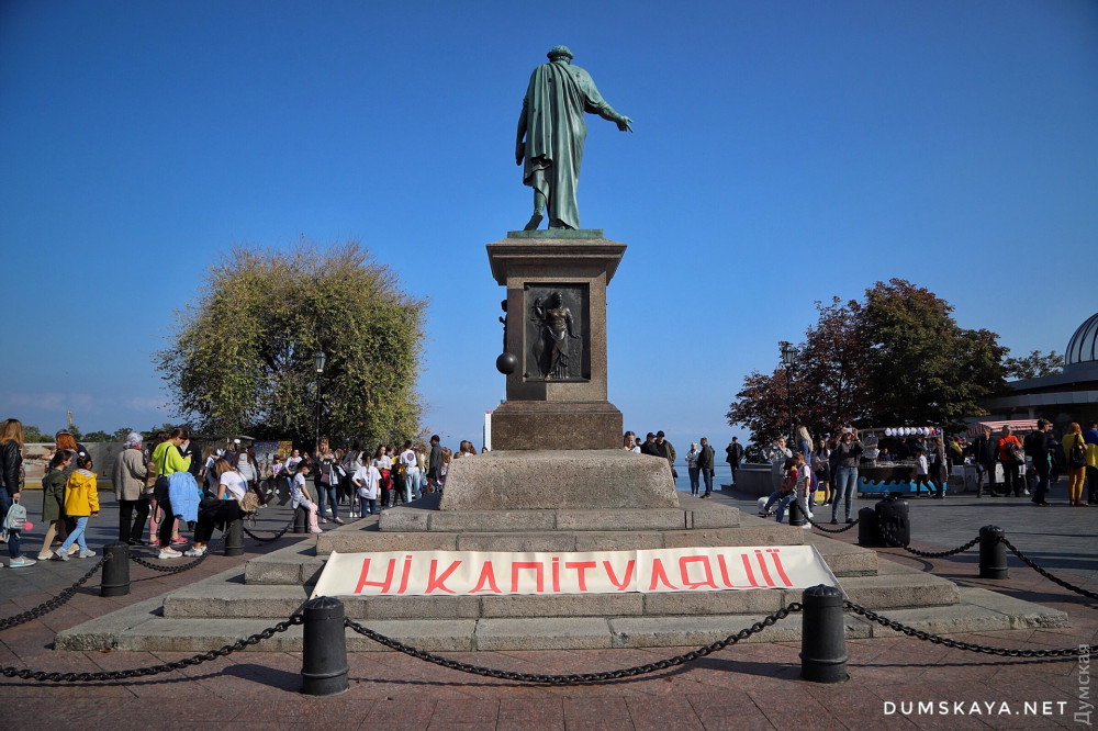 «Сначала россияне пытались захватить всю страну, потом хотя бы что-то, когда у них ничего не вышло, они решили действовать по-другому, — отметил Пановский с импровизированной сцены у ног де Ришелье. — Но украинцы не глупые, они все видят и понимают. Видим, что они хотят через политические и общественные организации оставить свою агентуру на нашей территории и использовать ее. Они хотят влиять на нас своим зомбированным пропагандой населением после того, как вернут нам оккупированные территории. Этого допустить нельзя».