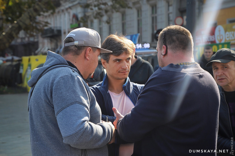 В самом начале прогуливающуюся по бульвару семью возмутило упоминание в общественном месте прозвища российского диктатора. А общественный активист Тодор Пановский повздорил с неизвестным молодым человеком. Последнему показалось, что в своей речи Тодор призвал отдать оккупированные области.