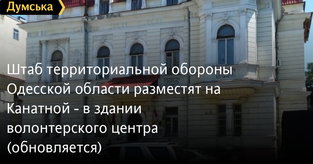 Штаб территориальной обороны Одесской области разместится в бывшем здании облвоенкомата на Канатной, 35, которое находится в совместной собственности территориальных громад региона.