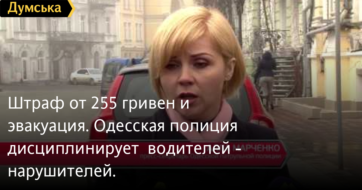 Штраф от 255 гривен и эвакуация. Одесская полиция дисциплинирует водителей — нарушителей.Две с половиной тысячи водителей за последние пару месяцев «попали» на сумму от 255 гривен — за неправильную парковку и остановку в неположенном месте. Сотрудники полиции ежедневно проводят рейды и штрафуют нарушителей СМЕРТЬ РОССИЙСКИМ ОККУПАНТАМ! Заметили ошибку? Выделяйте слова с ошибкой и нажимайте control-enter Думская ТВ. Сюжеты: