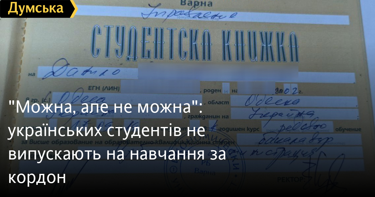 «Можна, але не можна»: українських студентів не випускають на навчання за кордонНаближається перше вересня. Батьки одеських студентів та школярів стурбовані насамперед питаннями бомбосховищ та дистанційним навчанням. Однак у студентів, які навчаються в іноземних вишах, проблема зараз зовсім інша: як виїхати за кордон. Про те, що українські студенти іноземних вишів мають право на відстрочку від призову та можуть виїздити на навчання, повідомлялося ще у квітні. Тоді на офіційних сайтах з'явилася інфографіка з докладним поясненням, які документи знадобляться. На перший погляд – все просто. Якщо ви навчаєтесь за кордоном, у вас є законне право продовжувати навчання та виїхати до свого університету. Тому спочатку потрібно зайти до свого територіального центру комплектації та соціальної підтримки (ТЦКіСП, колишній військкомат), отримати там позначку про відстрочку та дозвіл на виїзд за кордон. Потім ці документи потрібно пред'явити на кордоні — разом із закордонним паспортом та документом, який підтверджує, що ви дійсно є студентом іноземного вузу. Кажуть, у перші дні це працювало і документи на виїзд можна було отримати. Ось таку довідку можна було отримати ще у квітні. Нині в Одесі це вже нереально Зразки таких дозволів одеські батьки зараз передають з рук в руки. «Сарафанне батьківське радіо» повідомляє, що наразі студентові отримати дозвіл та виїхати за кордон неможливо в принципі. «Мій син навчається у Болгарії на факультеті державного управління, — розповідає одеситка Наталя. — Він перейшов на четвертий курс, залишається лише пройти практику та захистити диплом. Однак отримати документ для виїзду не виходить — ми б'ємось вже понад місяць, і перспектив не видно. Військкомат просто не видає цю довідку, посилаючись на різні причини». За словами Наталії, ні студентський квиток, ні довідки з університету про те, що син навчається на стаціонарі, працівників військкомату не влаштовують. Вони виставляють все нові й нові, іноді фантастичні вимоги. Наприклад – принести договір між Україною та Болгарією на навчання її сина. Ні студентський квиток, ні довідки з університету співробітників військкомату не влаштовують За словами співробітників військкоматів, рішення про зняття з обліку та видачу довідки для виїзду має приймати призовна комісія. Коли вона працюватиме – невідомо. Чи то у вересні, чи після війни. Наталя розповідає: іноді складається враження, що співробітники центрів комплектації щиро хочуть допомогти. Наприклад, пропонують поїхати на кордон із наявними документами і «спробувати вирішити питання на місці». Але іноді звучать інші слова. «Іноді чую, як шиплять за спиною: «Подивися на них! На навчання за кордоном у них гроші є, а вирішити питання виїзду не можуть», — каже Наталя. — Я не збираюся їм пояснювати, що мій син навчається за рахунок бюджету, отримує стипендію за відмінне навчання та забезпечує себе сам. У будь-якому випадку ми не збираємося «вирішувати питання» — у сина за законом є відстрочка і право закінчити навчання. Але я вже чула на свою адресу: «Нічого страшного, продовжить навчання після війни». Ще складніша ситуація у першокурсників. Одесита Артема ще у травні прийняли до технічного університету у Братиславі. Для зарахування йому залишилося лише приїхати та пред'явити документ про середню освіту. Я