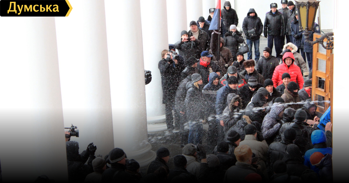 ничего себе позиция((((((( народ — это 5 десятков студентов в основном из Западных областей, которым вообще нет дела до наших с вами интересов и и т.п. им в кайф себя проявитоь, кулаки почесать двери в горсовете то причем? они не китайские фанерные их выломать — силы иметь надо, а если так неньку и Одессу любят, шли бы снег чистили