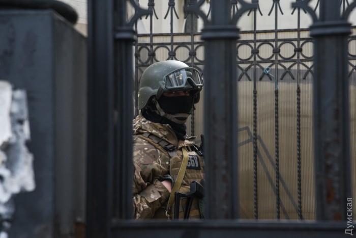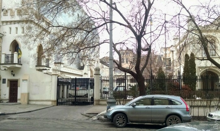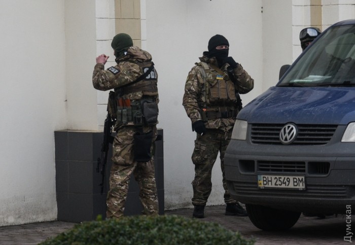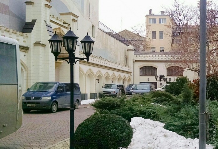 В Шахском дворце до сих пор орудуют сотрудники СБУ. На территорию компании «Синтез Ойл», расположенной в здании, никого не пускают. Во дворе стоят пять микроавтобусов.