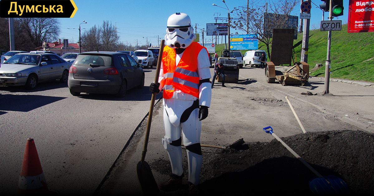 Штурмовики Дарта Вейдера устраняют черные дыры на одесских дорогах