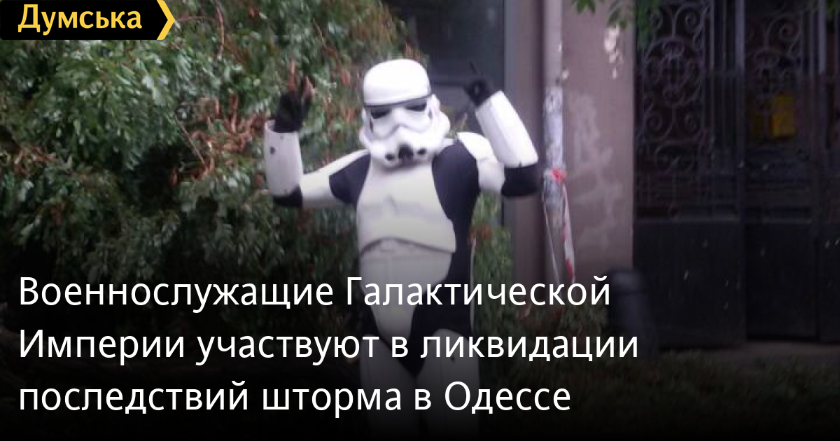 Напомним, военнослужащие Галактической Империи регулярно участвуют в ликвидации последствий стихийных ЧС на территории Одессы. Впервые их задействовали после урагана 31 мая 2013 года.