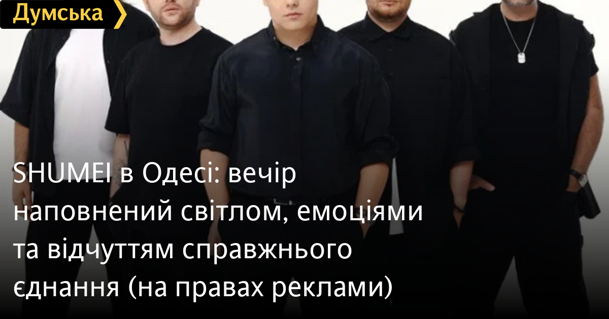 SHUMEI в Одесі: вечір наповнений світлом, емоціями та відчуттям справжнього єднання (на правах реклами)SHUMEI в Одесі! 28 квітня 2026 року в Одеському академічному театрі музичної комедії ім. М. Водяного відбудеться концерт SHUMEI. SHUMEI вирушає у масштабний концертний тур «TOUR – 2026». Він об’єднає десятки міст України та Європи, даруючи шанувальникам унікальну можливість стати частиною великої музичної подорожі. Це більше, ніж просто серія виступів – це щире глибоке музичне переживання, що торкається серця і створює особливий зв’язок між артистом і кожним слухачем. Шумей с «TOUR – 2026» Приготуйтеся до вечора, наповненого світлом, емоціями та відчуттям справжнього єднання. Концерти SHUMEI – це своєрідна музична терапія, яка надихає, заспокоює та дарує сили рухатися вперед, навіть у найскладніші часи. Не пропустіть шанс стати частиною цієї події. Щоб потрапити на концерт SHUMEI в Одесі, купуйте квитки сайті та в касах міста. Пісні SHUMEI: Тривога Вона була така Мальви Пробач Біля тополі СМЕРТЬ РОСІЙСЬКИМ ОКУПАНТАМ! Помітили помилку? Виділяйте слова з помилкою та натискайте control-enter |