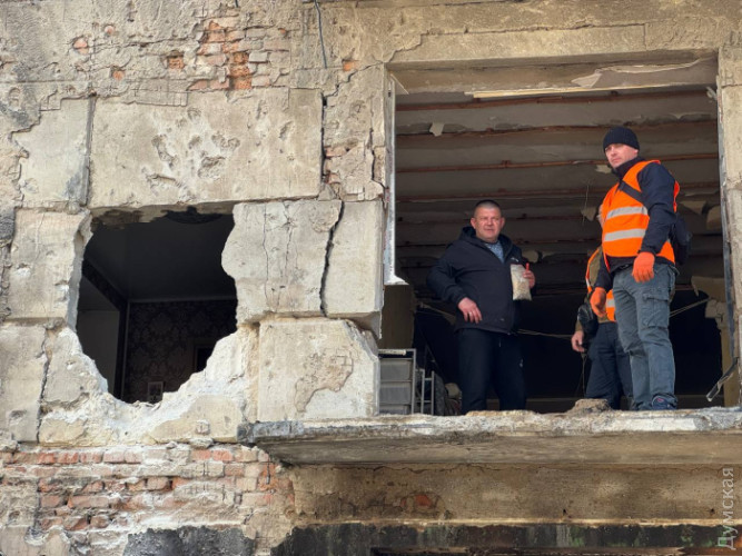 Схватил аптечку и побежал спасать людей: как одессит выводил соседей из пятиэтажки во время ночной атакиНочная атака дронов на Одессу в очередной раз показала сплоченность горожан. Один из жителей района, Константин, стал первым, кто оказал помощь пострадавшим в пятиэтажке на Черемушках. Он рассказал кореспонденту «Думской», что момента пролета дрона не слышал — проснулся уже от мощного взрыва, от которого затрясся дом и посыпались стекла. Выбежав на улицу, Костантин увидел пламя и сразу понял, что медлить нельзя. «У меня с собой была аптечка, два турникета — побежал спасать людей. Я забежал на второй этаж помог, там был мужичек. Вывел его во двор. А на третьем оказались лежачие дедушка с бабушкой. Их было очень сложно транспортировать. Сосед помог мне вынести дедушку, а бабушку мы в шестерых выносили на носилках вместе со скорой. А потом здесь стояла одна машина, там, где стоит микроавтобус, я помогал ей выехать», — рассказывает одессит. Напомним, в результате ночного налета в пятиэтажке в Хаджибейском районе пострадали трое. Два человека (86-летние мужчина и женщина) госпитализированы с острой реакцией на стресс. Еще один будет лечиться амбулаторно. Взрывной волной и осколками повреждено около 250 окон и 25 балконов. Еще четыре балкона разрушены полностью. Пострадали 6 легковых автомобилей. СМЕРТЬ РОССИЙСКИМ ОККУПАНТАМ! Заметили ошибку? Выделяйте слова с ошибкой и нажимайте control-enter |