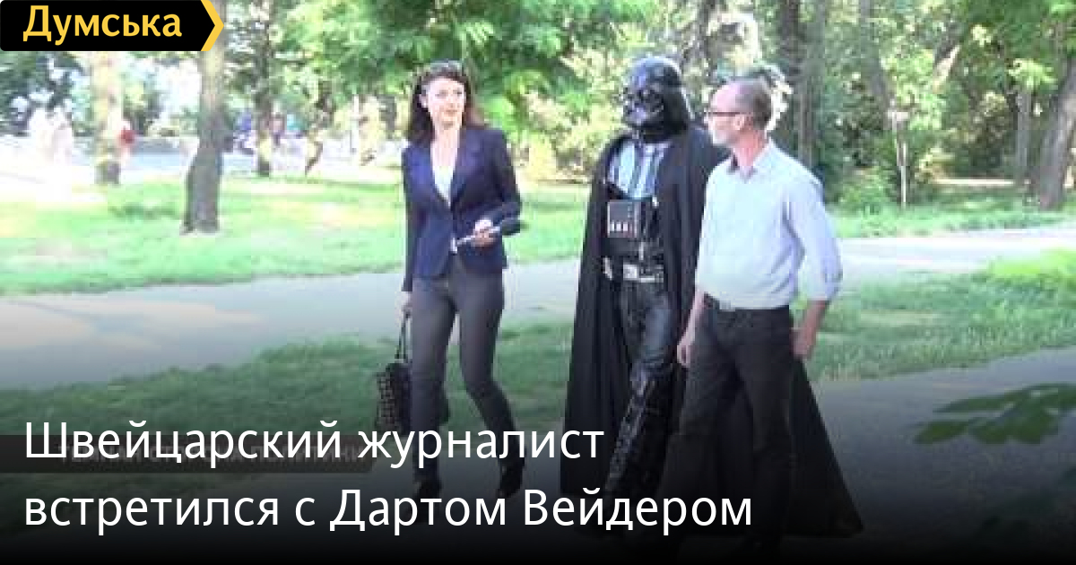 Дарт Вейдер как явление политическое будоражит фантазии не только украинцев, но и иностранцев. Политический журналист из Швейцарии Вэнзел Фрик прилетел в Одессу специально, чтобы пообщаться с Владыкой Ситхов. Наш корреспондент Мишель Арманд побывала на невероятной встрече Фрика и Вейдера. СМЕРТЬ РОССИЙСКИМ ОККУПАНТАМ! Заметили ошибку? Выделяйте слова с ошибкой и нажимайте control-enter Думская ТВ. Сюжеты: