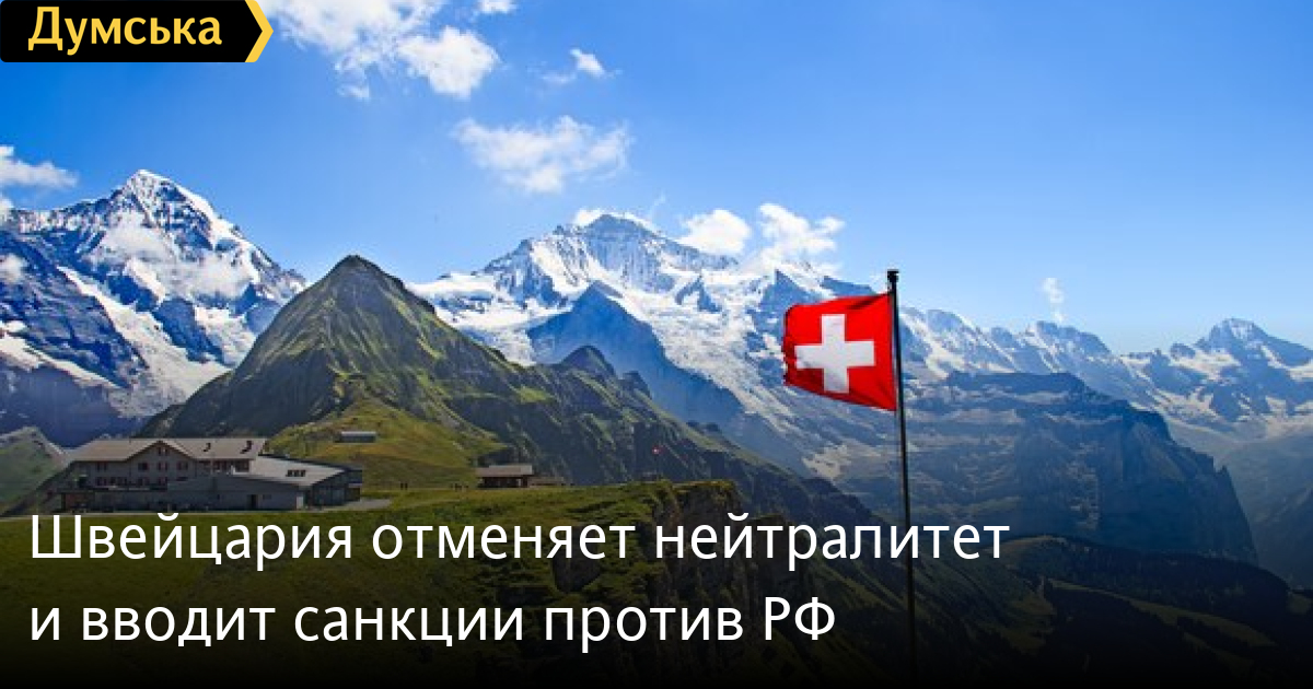 Из-за полномасштабного военного вторжения РФ в Украину Швейцария отменяет нейтралитет и вводит санкции против России, в том числе лично против президента страны-агрессора Владимира Путина и главы МИД Сергея Лаврова.
