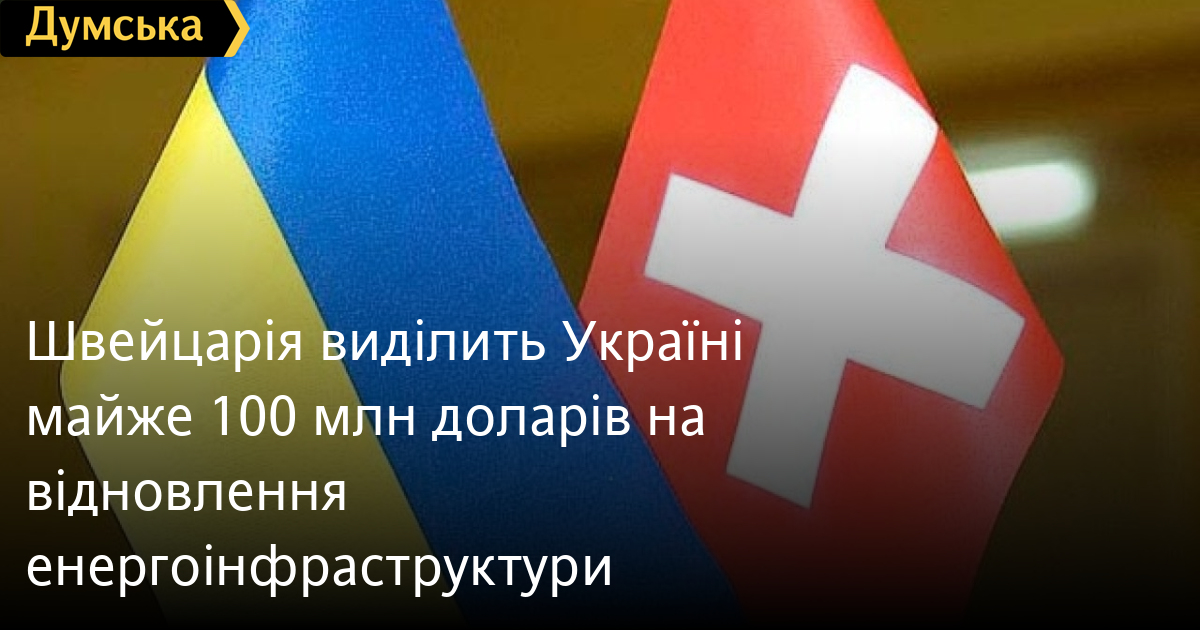 97 млн доларів допомоги на фінансування термінового відновлення енергетичної інфраструктури отримає Україна від Швейцарії.