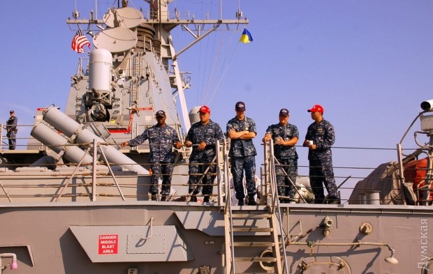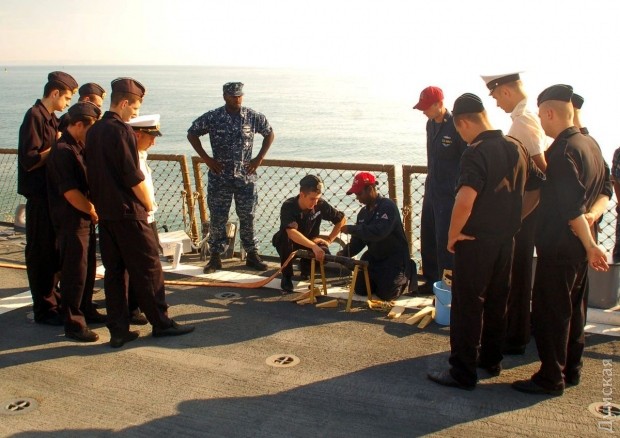 В Одесской и Николаевской областях продолжаются международные военно-морские учения «Си Бриз-2015». В пятницу на борту американского ракетного эсминца «Дональд Кук» и украинского фрегата «Гетман Сагайдачный» прошла тренировка — аварийные команды подтягивали навыки борьбы за живучесть, а досмотровые группы учились избегать нехороших ситуаций при обследовании подозрительных судов.