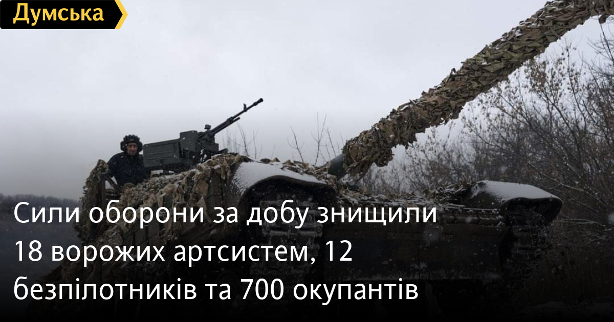 Силы обороны за сутки уничтожили 18 вражеских артсистем, 12 беспилотников и 700 оккупантов700 человек, пять танков и 18 артсистем потеряли российские оккупанты за прошедшие сутки. Кроме того, по данным Генерального штаба Вооруженных сил Украины, наши защитники также уничтожили 15 боевых бронированных машин, четыре средства ПВО, 12 БПЛА оперативно-тактического уровня, 20 единиц автомобильной техники и шесть единиц спецтехники. Всего с начала полномасштабного вторжения потери врага составили: личного состава — 369 160 человек; танков — 6065 единиц; боевых бронированных машин — 11269 единиц; артиллерийских систем — 8728 единиц; РСЗО — 957 единиц; средства ПВО - 646 единиц; самолетов — 329 единиц; вертолетов — 324 единицы; БПЛА оперативно-тактического уровня — 6848; крылатые ракеты — 1806; корабли /катера — 23 единицы; подводные лодки — 1 единицу; автомобильной техники и автоцистерн — 11632 единицы; специальная техника — 1345. СМЕРТЬ РОСІЙСЬКИМ ОКУПАНТАМ! Помітили помилку? Виділяйте слова з помилкою та натискайте control-enter |