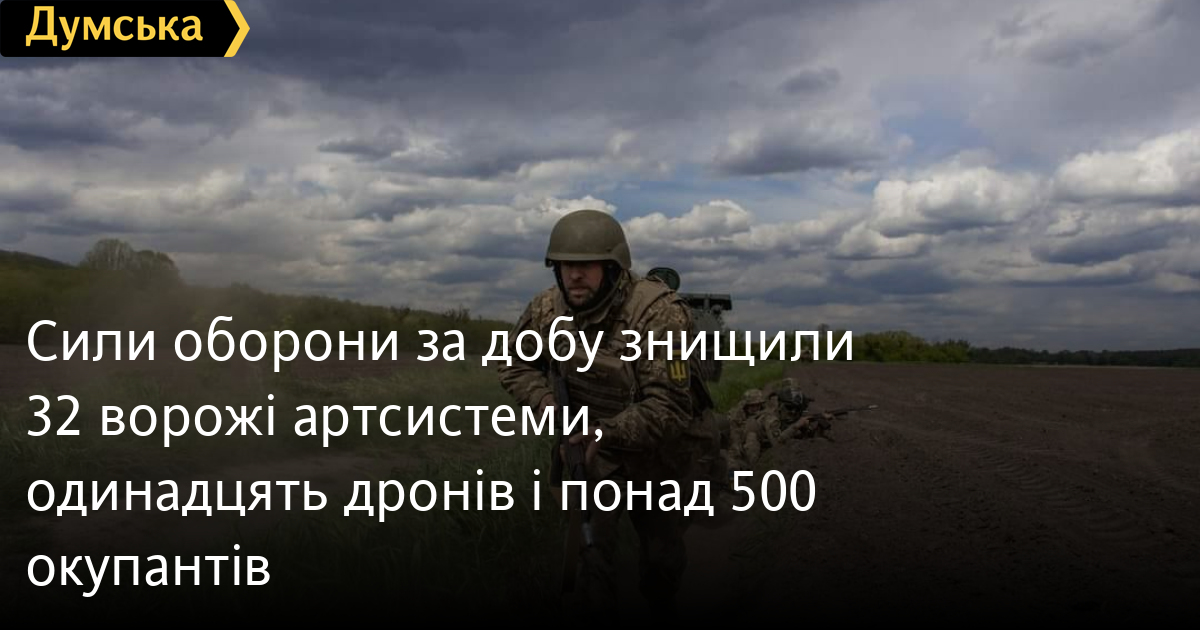 Одинадцять дронів оперативно-тактичного рівня, 32 артсистеми та 510 військових втратили російські нацисти в Україні за минулу добу.