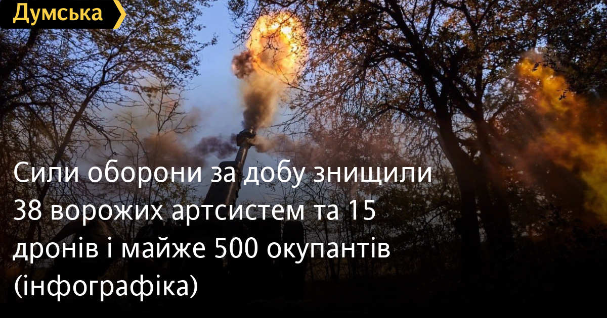 Сили оборони за добу знищили 38 ворожих артсистем та 15 дронів і майже 500 окупантів (інфографіка)470 окупантів, 38 артилерійських систем та 15 дронів оперативно-тактичного рівня втратили російські загарбники минулої доби. За даними Генерального штабу Збройних сил України, наші захисники знищили також 4 танки, 12 бойових броньованих машин, 2 реактивні системи залпового вогню, засіб ППО, 18 одиниць автомобільної техніки та дві — спецтехніки. Загальні бойові втрати противника з 24.02.22 по 30.09.23 орієнтовно становлять: особового складу ‒ 278130 (+470) осіб ліквідовано танків ‒ 4691 (+4) бойових броньованих машин ‒ 8984 (+12) артилерійських систем – 6447 (+38) од, РСЗВ ‒ 796 (+2) засоби ППО ‒ 537 (+1) літаків ‒ 315 (0) гелікоптерів ‒ 316 (0) БПЛА оперативно-тактичного рівня ‒ 5006 (+15) крилаті ракети ‒ 1529 (0) кораблі / катери ‒ 20 (0) підводні човни ‒ 1 (0) автомобільної техніки та автоцистерн ‒ 8854 (+18) спеціальна техніка ‒ 932 (+2) СМЕРТЬ РОСІЙСЬКИМ ОКУПАНТАМ! Помітили помилку? Виділяйте слова з помилкою та натискайте control-enter |