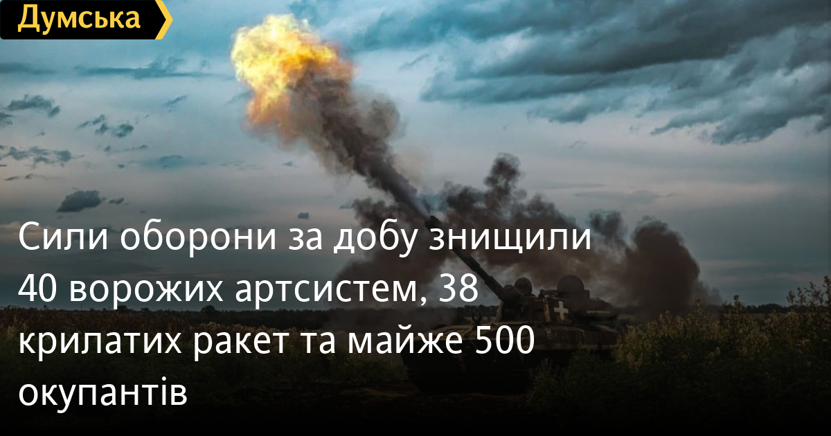 Сили оборони за добу знищили 40 ворожих артсистем, 38 крилатих ракет та майже 500 окупантів480 окупантів, 40 артилерійських систем та 38 крилатих ракет втратили російські загарбники минулої доби. За даними Генерального штабу Збройних сил України, наші захисники знищили також 6 танків, 8 бойових броньованих машин, 4 реактивні системи залпового вогню, 8 дронів оперативно-тактичного рівня 20 одиниць автомобільної техніки та одну — спецтехніки. Загальні бойові втрати противника з 24.02.22 по 22.09.23 орієнтовно становлять: особового складу ‒ 274950 (+480) осіб ліквідовано танків ‒ 4644 (+6) бойових броньованих машин ‒ 8891 (+8) артилерійських систем ‒ 6177 (+40) РСЗВ ‒ 785 (+4) засоби ППО ‒ 528 (0) літаків ‒ 315 (0) гелікоптерів ‒ 316 (0) БПЛА оперативно-тактичного рівня ‒ 4858 (+8) крилаті ракети ‒ 1517 (+38) кораблі / катери ‒ 20 (0) підводні човни ‒ 1 (0) автомобільної техніки та автоцистерн ‒ 8690 (+20) спеціальна техніка ‒ 912 (+1) СМЕРТЬ РОСІЙСЬКИМ ОКУПАНТАМ! Помітили помилку? Виділяйте слова з помилкою та натискайте control-enter |
