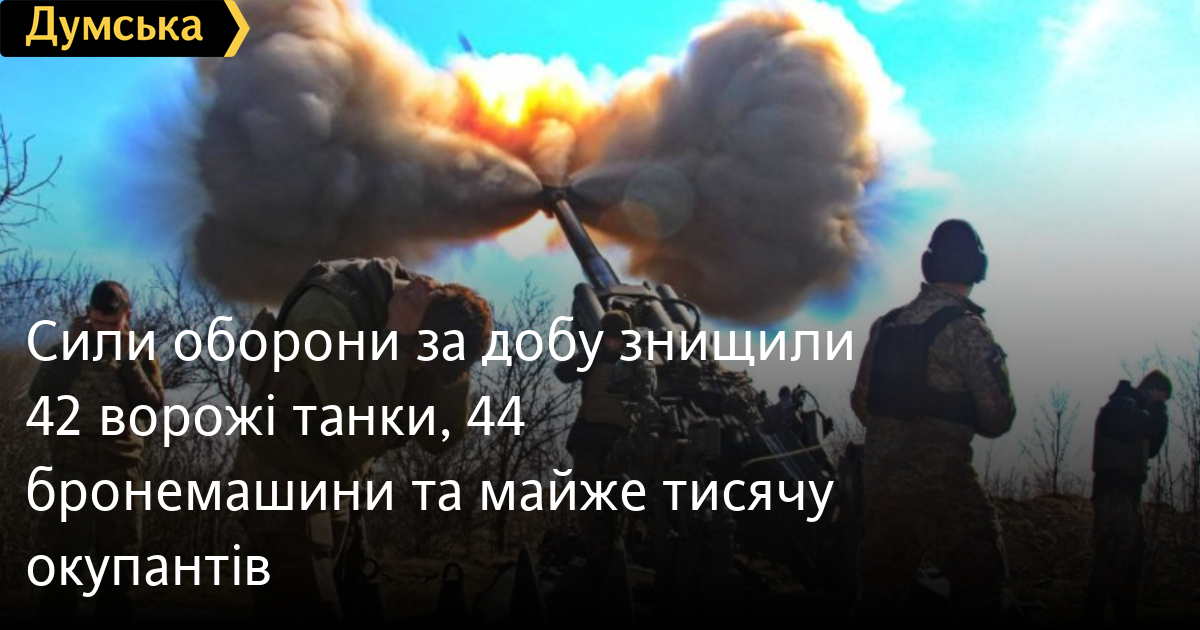 990 окупантів, 42 танки та 44 бойові броньовані машини втратили російські загарбники минулої доби.