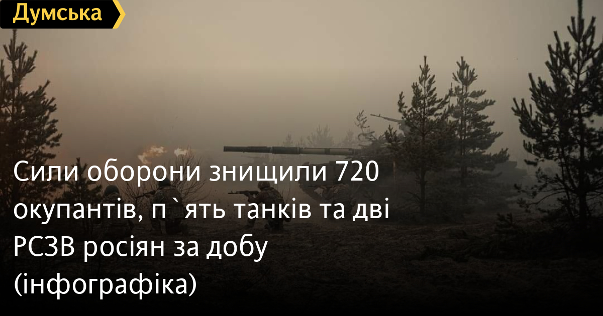 720 окупантів, п'ять танків та дві реактивні системи залпового вогню російських нацистів знищили за минулу добу Сили оборони України.