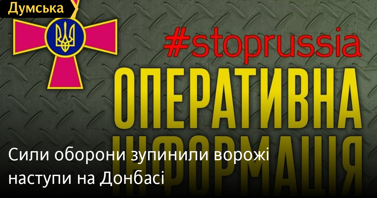 Українські війська відбили ворожі атаки в районі населених пунктів Торське та Спірне на краматорському напрямку, біля Берестового, Соледара та Бахмута на бахмутському напрямку та поблизу Мар'їнки, Перемоги, Невельського на авдіївському напрямку. Про це повідомили у ранковому зведенні оперативної обстановки Генерального штабу Збройних сил України. Окупанти продовжують обстрілювати населені пункти вздовж усієї лінії фронту. Наша авіація 15 жовтня завдала 32 ударів по ворожих позиціях. Було вражено 24 райони зосередження живої сили та техніки противника, вісім позицій систем ППО. Українська ППО збила ворожий вертоліт та шість безпілотників. Ракетні війська тричі вдарили по місцях скупчення ворогів, знищили один склад боєприпасів, сім систем ППО. За уточненою інформацією, раніше у селі Марфополь у Запорізькій області було знищено склад боєприпасів окупантів, поранено понад 20 рашистів. У Токмаку знищено десять одиниць російської техніки, поранено до 40 ворогів. У Пологах – 30 поранених окупантів, у Кам'янці-Дніпровській уражено сім одиниць ворожої техніки та поранено близько 40 ворогів. СМЕРТЬ РОСІЙСЬКИМ ОКУПАНТАМ! Помітили помилку? Виділяйте слова з помилкою та натискайте control-enter |
